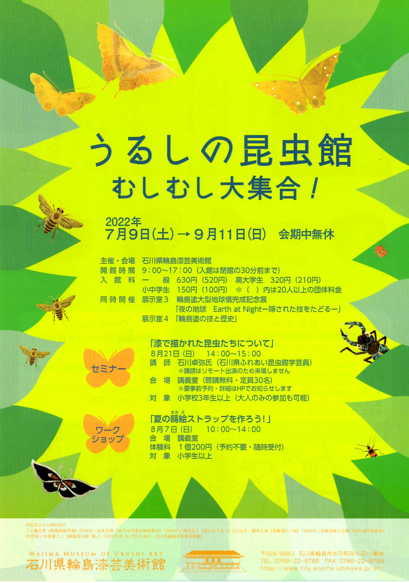 チョウやトンボ、ホタルなど、自然豊かな日本において身近な存在である昆虫をモチーフにした漆芸作品を展示します。