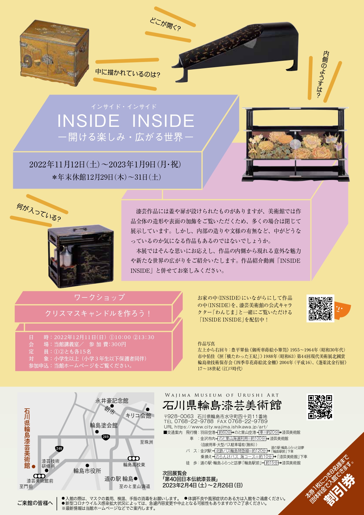 当館ホームページ「おうちでうるしミュージアム」の作品紹介動画「INSIDE INSIDE」と併せてお楽しみください。