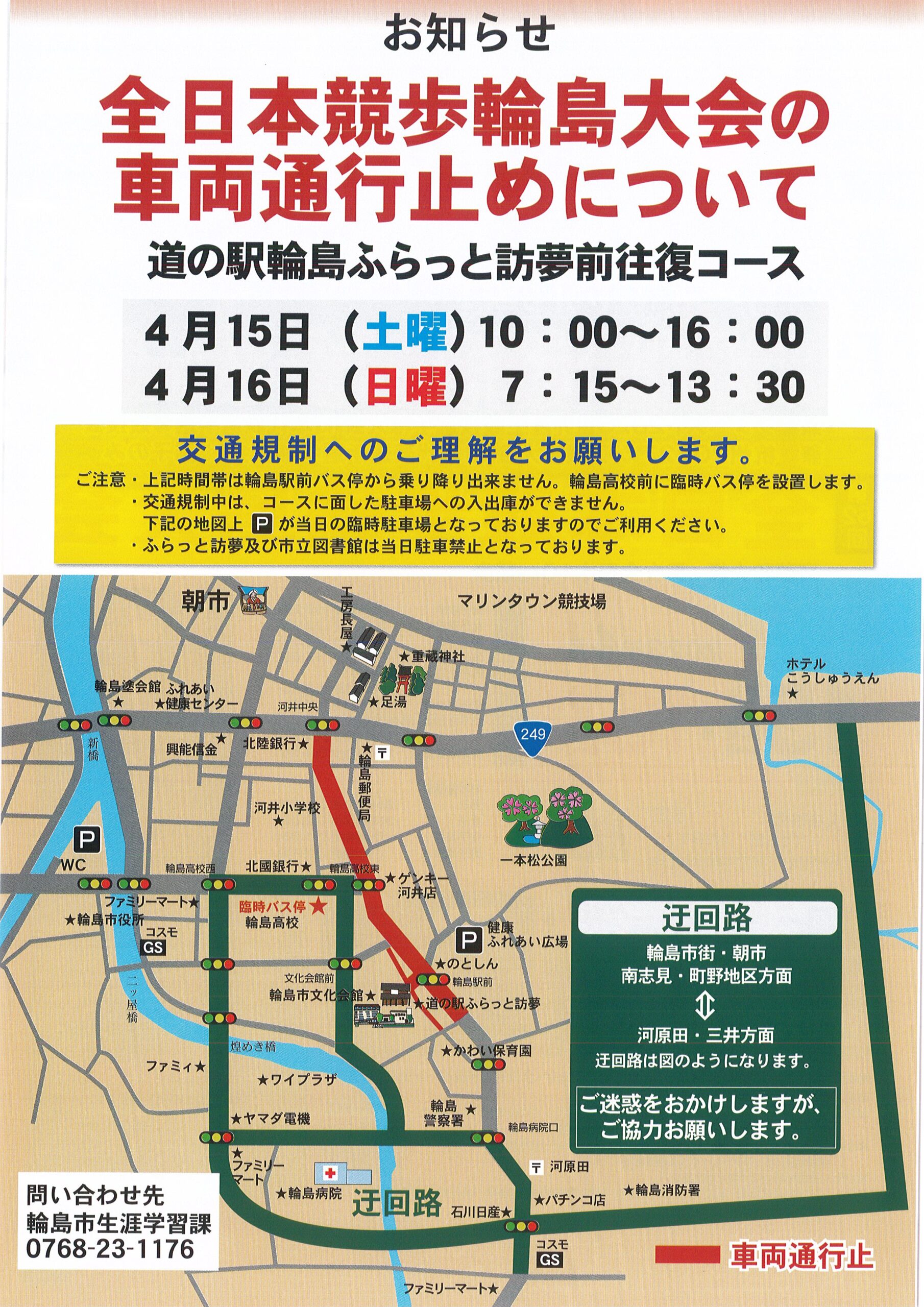 第107回日本陸上競技選手権大会35km競歩・第62回全日本競歩輪島大会について、2023年4月15日(土)、16日(日)に標記大会が輪島市「道の駅ふらっと訪夢前往復コース」にて開催されます。