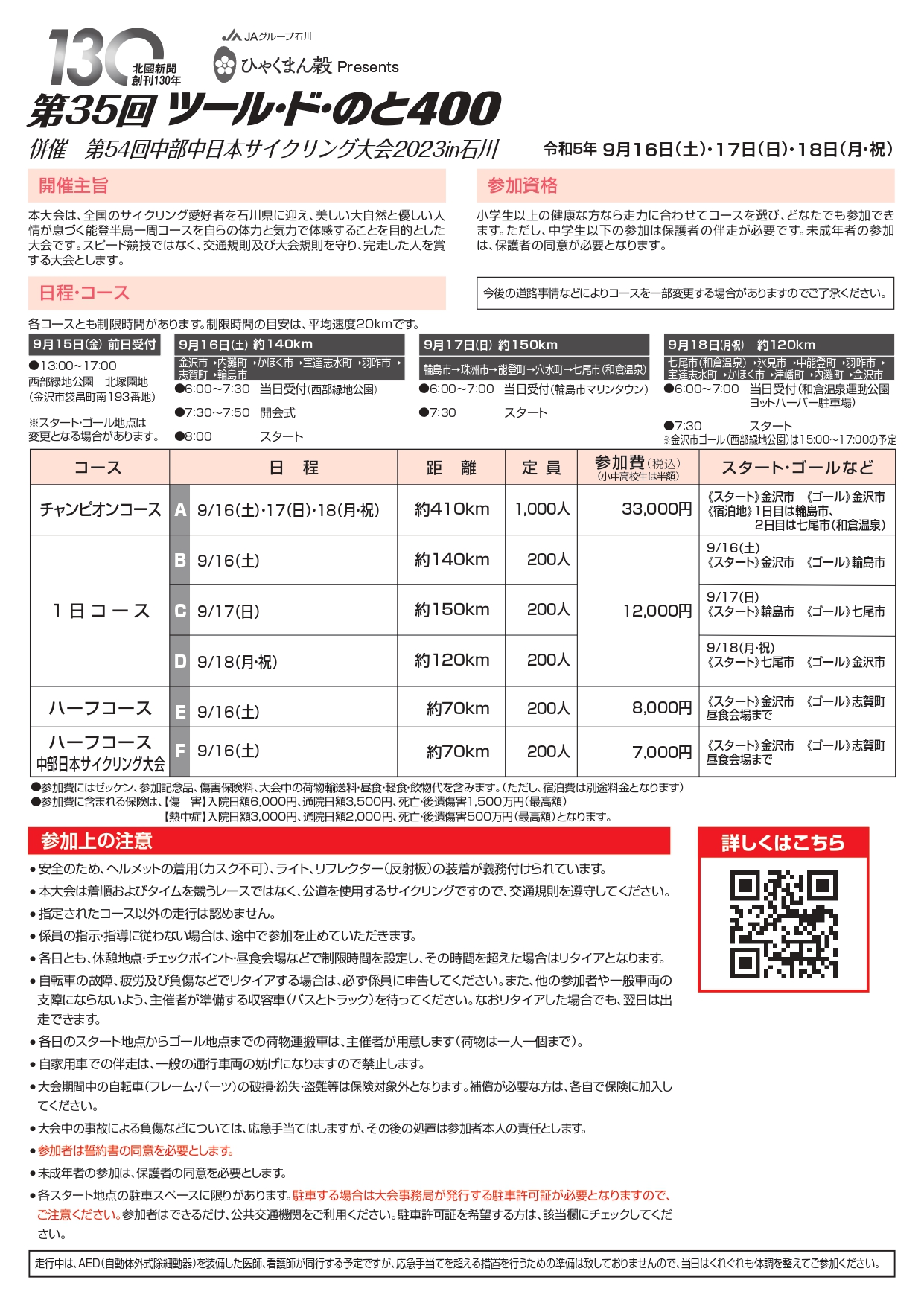 9月16日(土)・17日(日)・18日(月・祝)第35回 ツール・ド・のと400